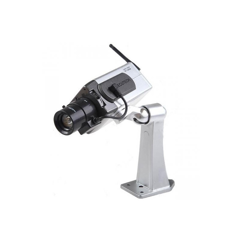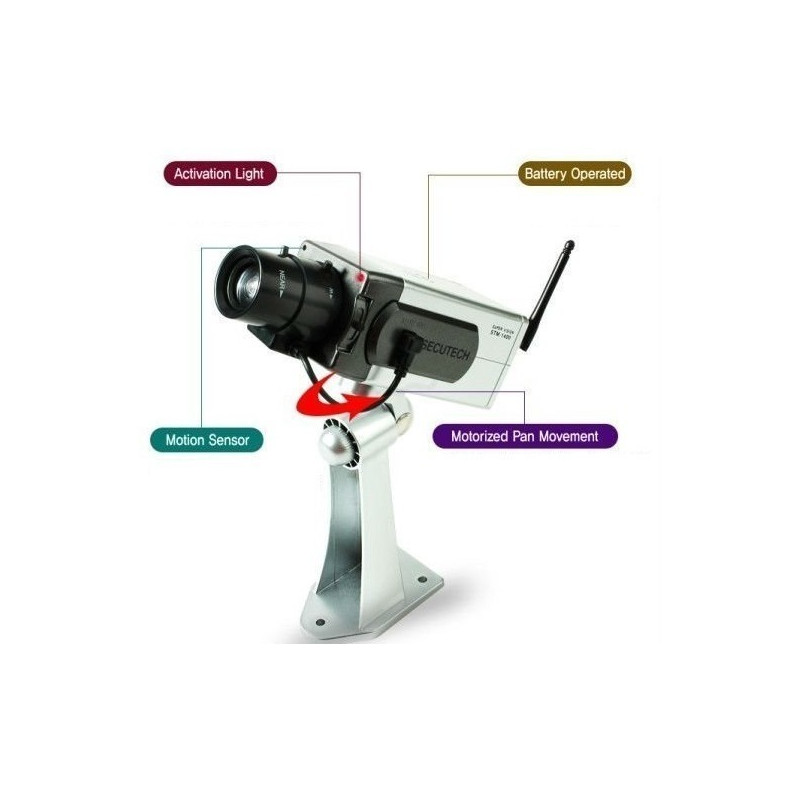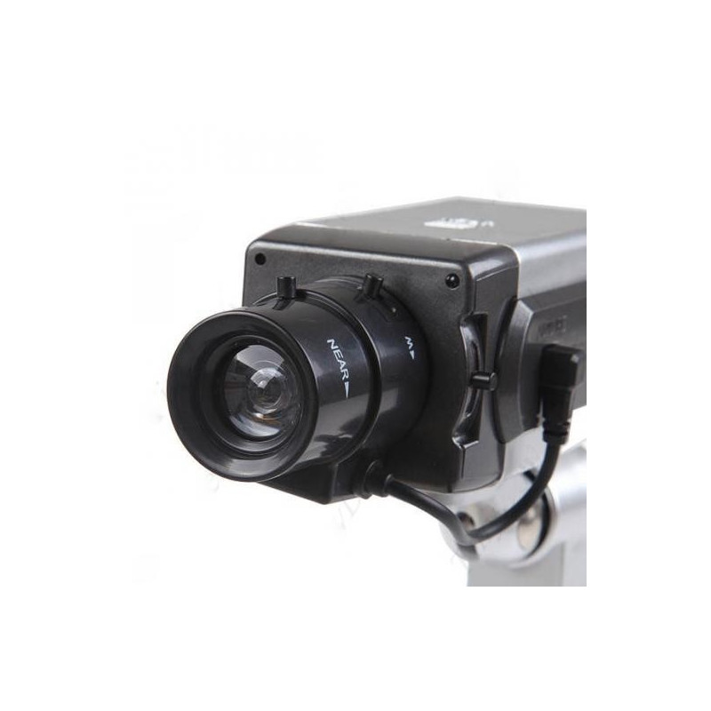 Фалшивата охранителна камера с обектив, диод и датчик за движение е перфектното решение за осигуряване на помещения, в които се съмнявате относно възможността от поява на крадци. Тя е изработена така, че да изглежда като истинска камера за видеонаблюдение и има червен светлинен диод, който заблуждава потенциалните престъпници. Когато някой премине в обхват от около 7 метра, датчикът за движение се активира и камерата започва да сигнализира, като светлинния индикатор премигва.