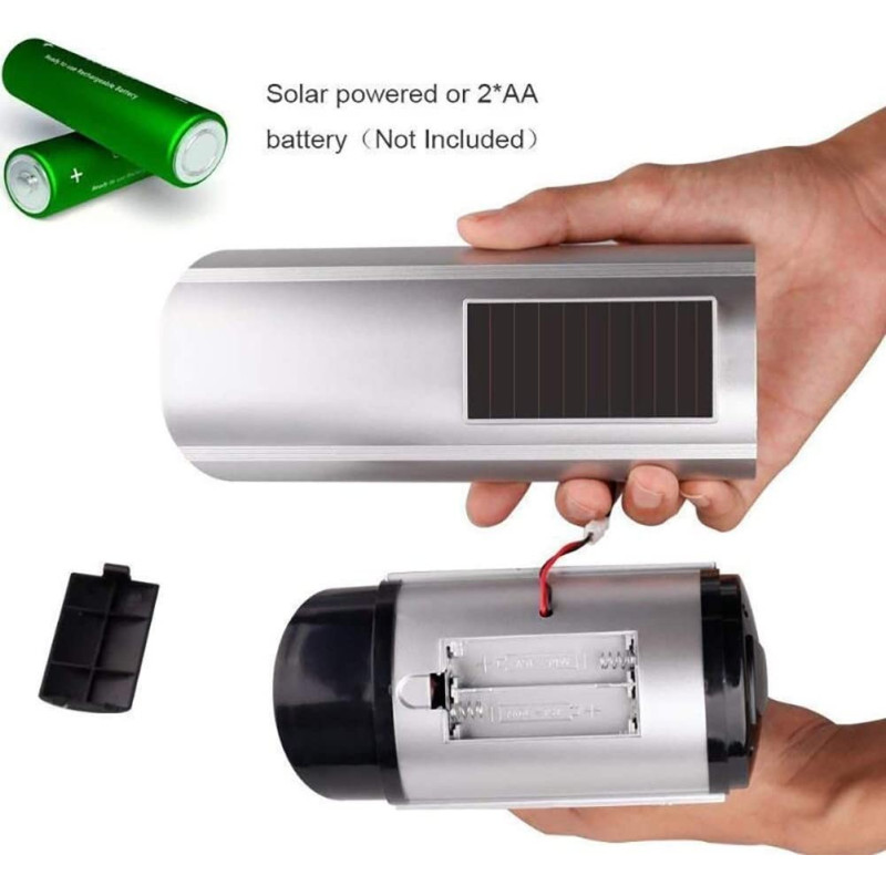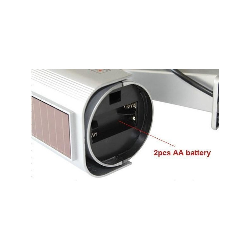 Тази фалшива камера за видеонаблюдение е и изключително енергоспестяваща. През деня се захранва от соларния панел, а през останалото време работи с две батерии ААА. Това осигурява продължителна работа и надеждна защита дори при липса на слънчева енергия.