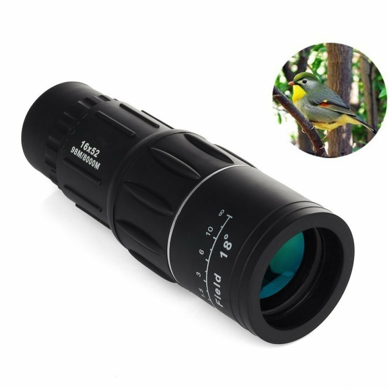 Представяме ви компактен монокъл с водоустойчив корпус 16x52 - качествен прибор за наблюдение, идеален за ловци, рибари и разходки в планината.