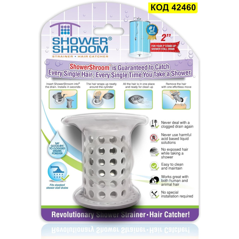 Повечето тапи минават над сифона, но силиконовия филтър TubShroom се поставя вътре. Космите се събират около него. Той е подходяща за всеки стандартен отводнителен канал за вана или мивка и гарантирано улавя всеки косъм, всеки път, без да прекъсва потока на водата. Когато дойде време за почистване, просто го извадете, избършете го и го поставете обратно! Кажете сбогом на заплетените кълба от косми! Филтъра TubShroom ви спестява неприятностите и травмите, свързани с отпушването на канализацията.