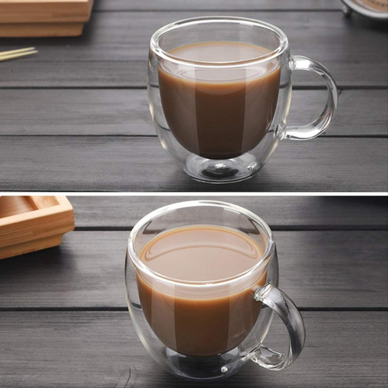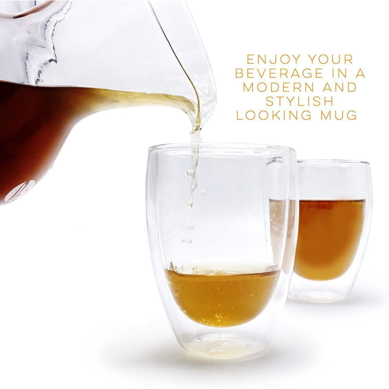 Наслади се на идеалното еспресо с тази двустенна стъклена чаша 80 мл без дръжка. Изработена от висококачествено боросиликатно стъкло, тя е лека, здрава и устойчива на температурни промени. Благодарение на двойните стени, напитката запазва топлината си по-дълго, докато външната част остава приятно хладна на допир.