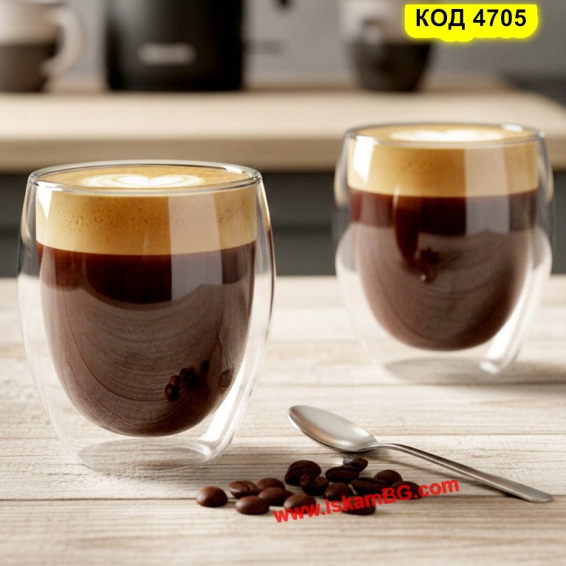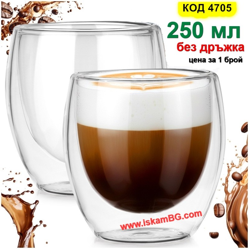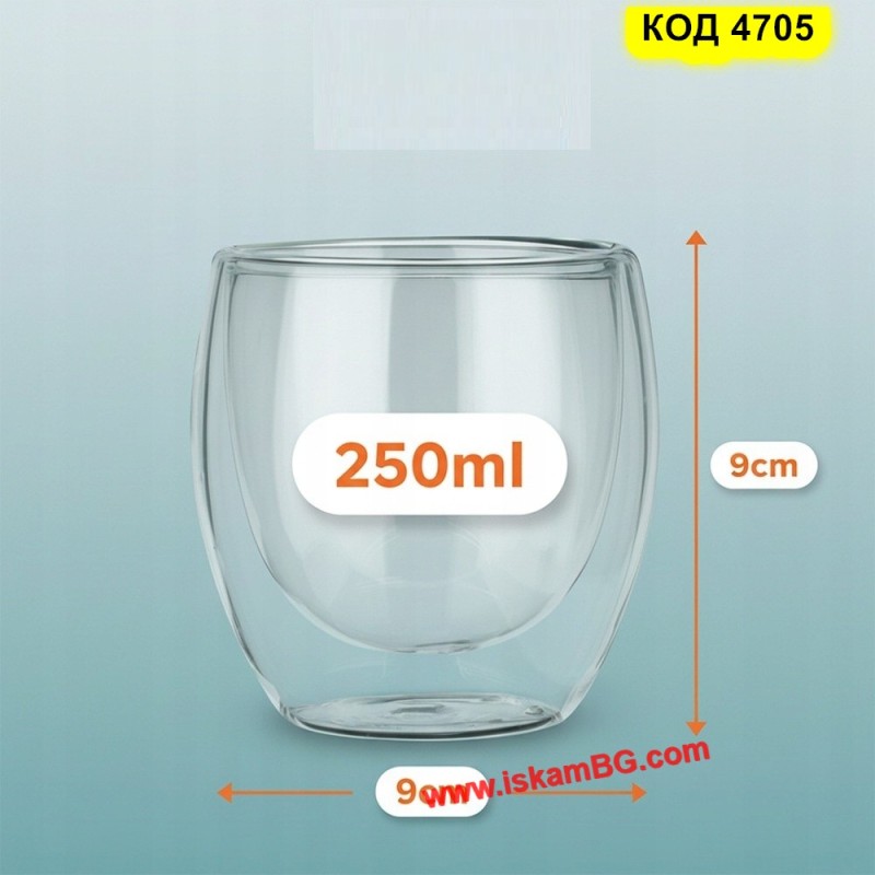 1 брой стъклена чаша с двойно дъно 250мл, без дръжка