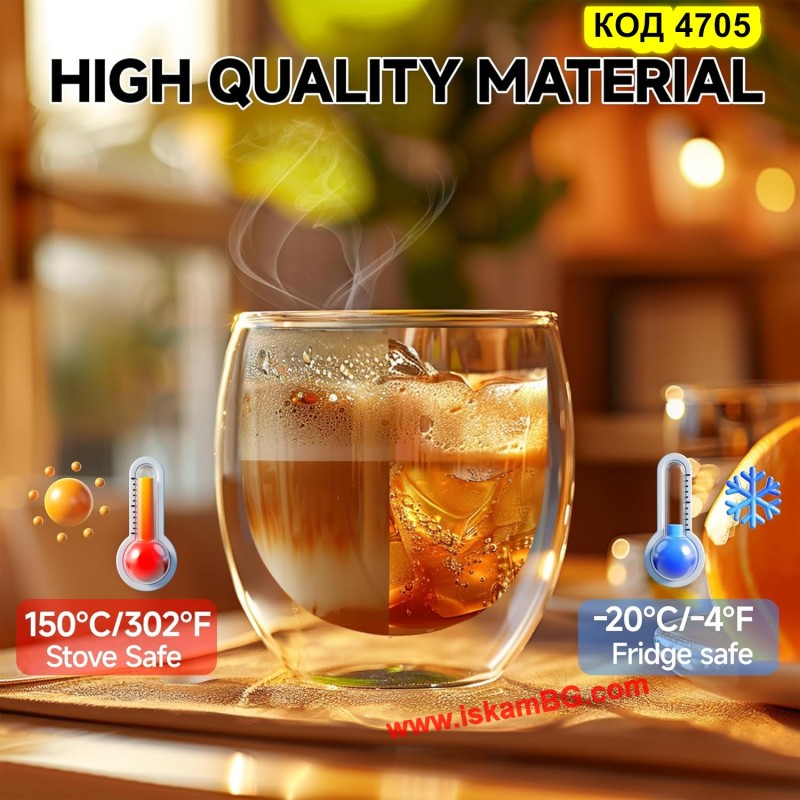 Модерна и минималистична, тази стъклена чаша с двойни стени е създадена за онези, които ценят стил и функционалност.