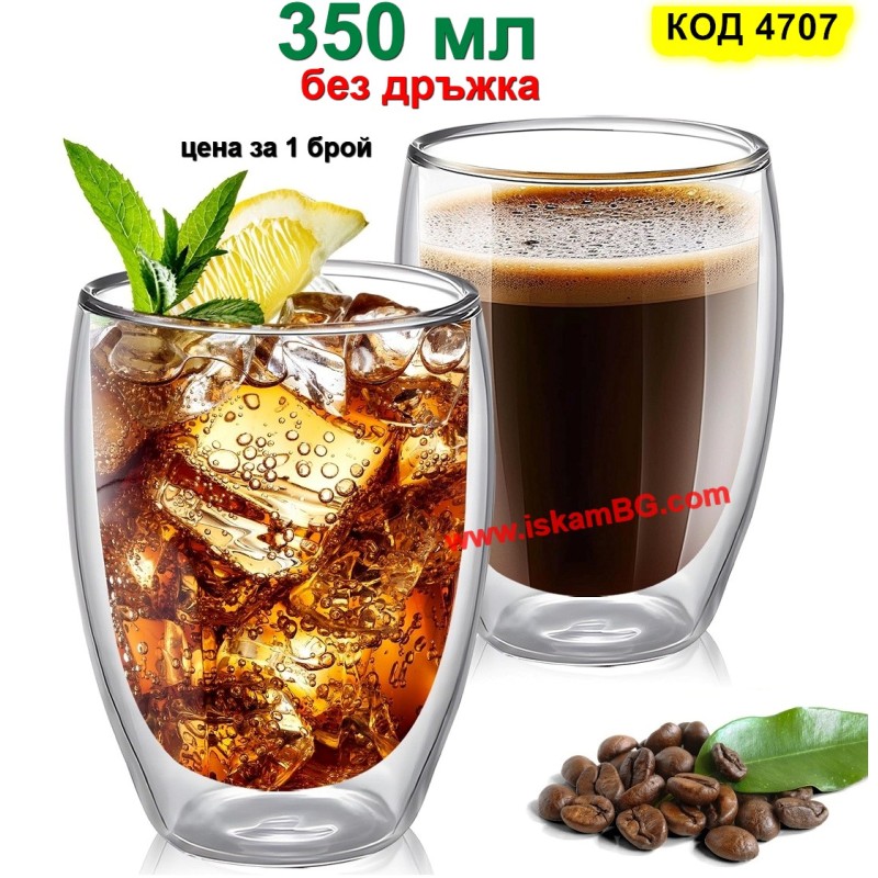 Двустенна чаша за чай, капучино, кафе – 350 мл, без дръжка