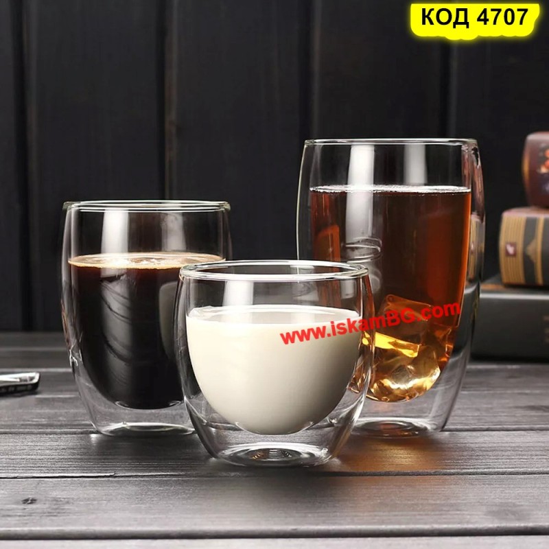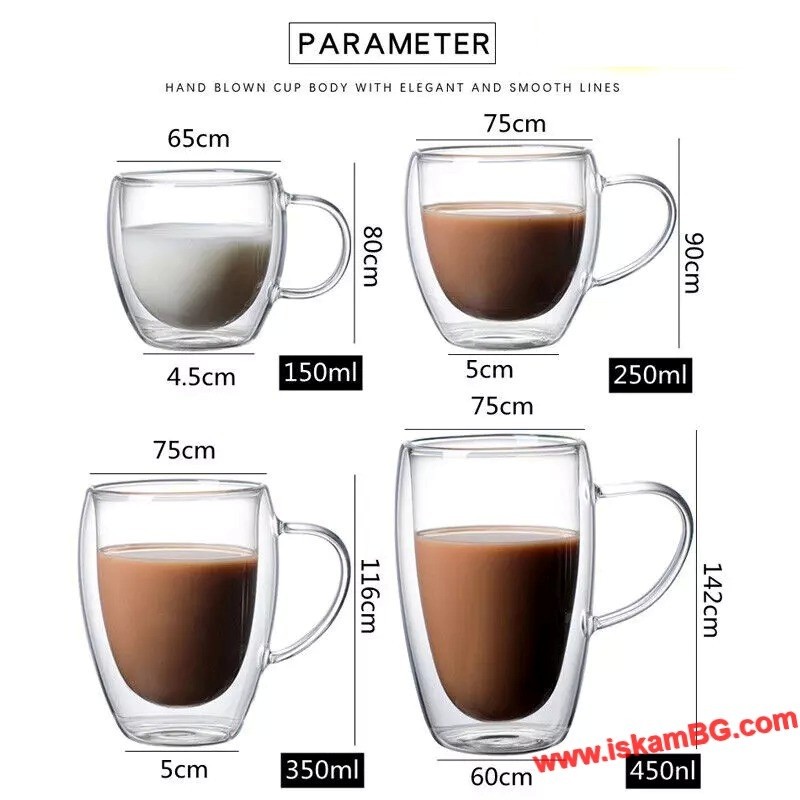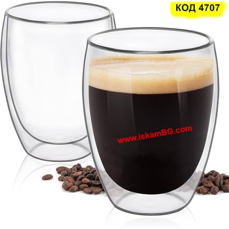 1 брой стъклена двустенна чаша за кафе с вместимост 350 мл (без дръжка)
