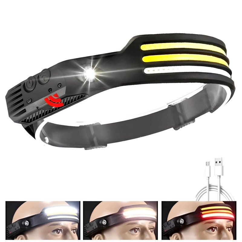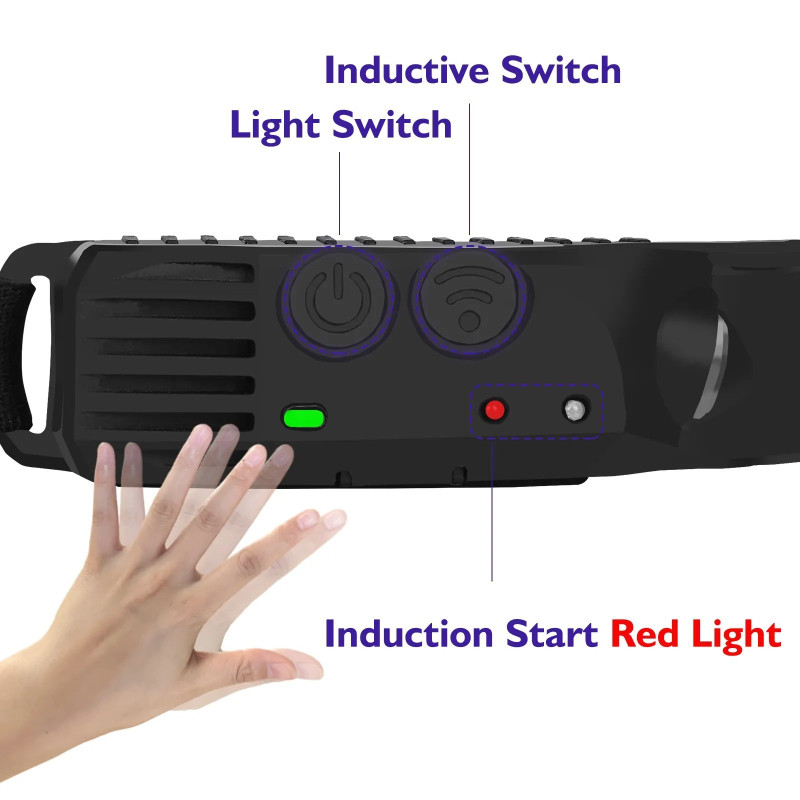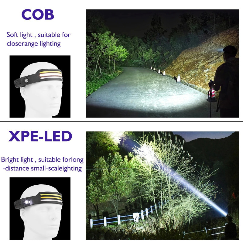 Акумулатореният LED челник има интелигентен сензорен режим, който ви позволява да го включвате или изключвате без натискане на бутони. Светодиодният челник има 5 режима на светене: COB лампа 100%, COB лампа 40%, фенерче 100%, фенерче 40% и мигащ режим (активира се с продължително натискане на ключа).
