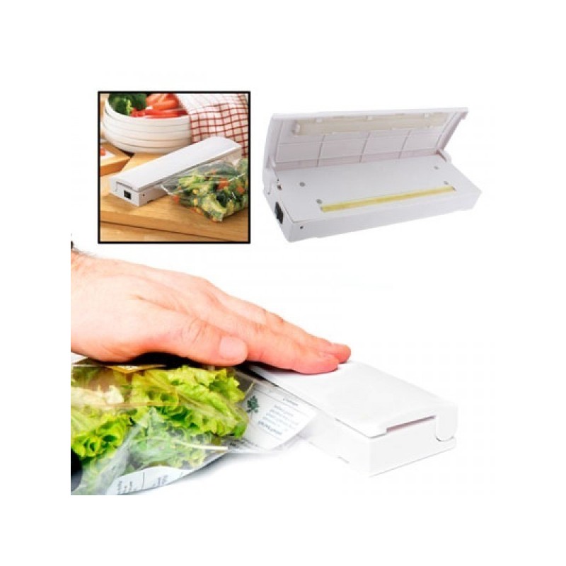 С Reseal and Save няма нужда да се притеснявате за изпуснати или пропускливи торбички и съдове. Този уред е създаден да предпази вашите храни от ненужната мръсотия и влага. Просто поставете желаната опаковка в уреда, натиснете бутона и задръжте горния капак затворен за секунди. За миг, вашата храна ще бъде херметично запечатана и непромокаема.