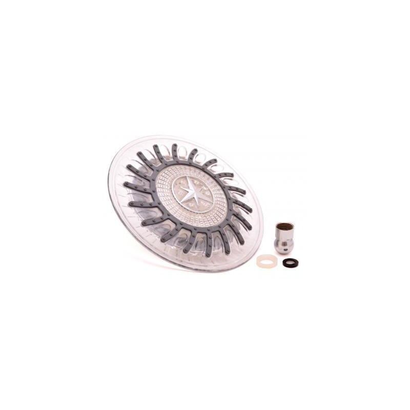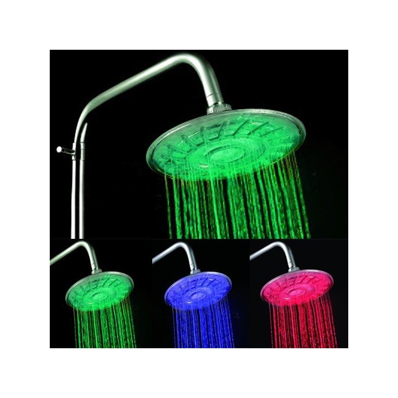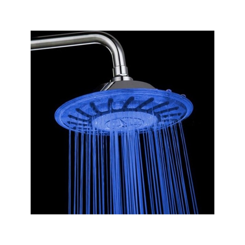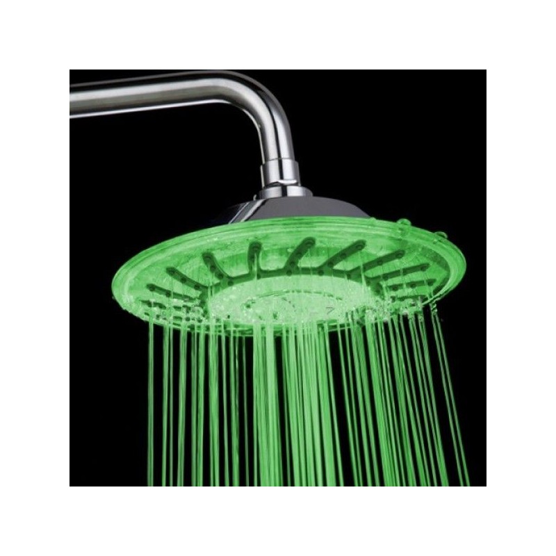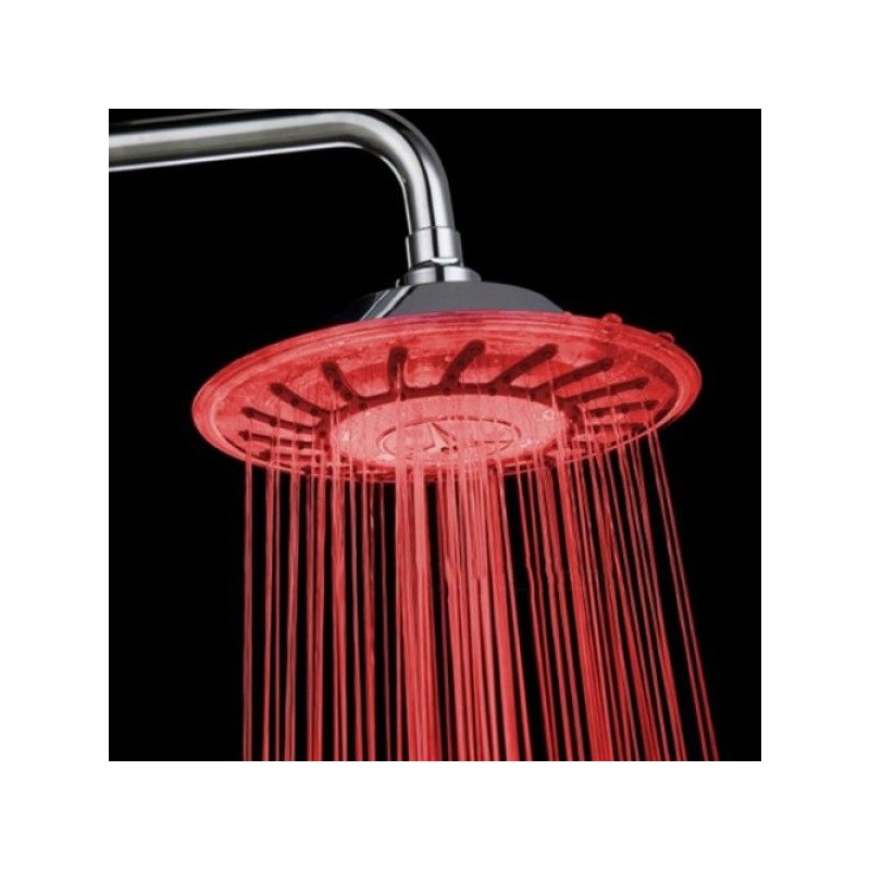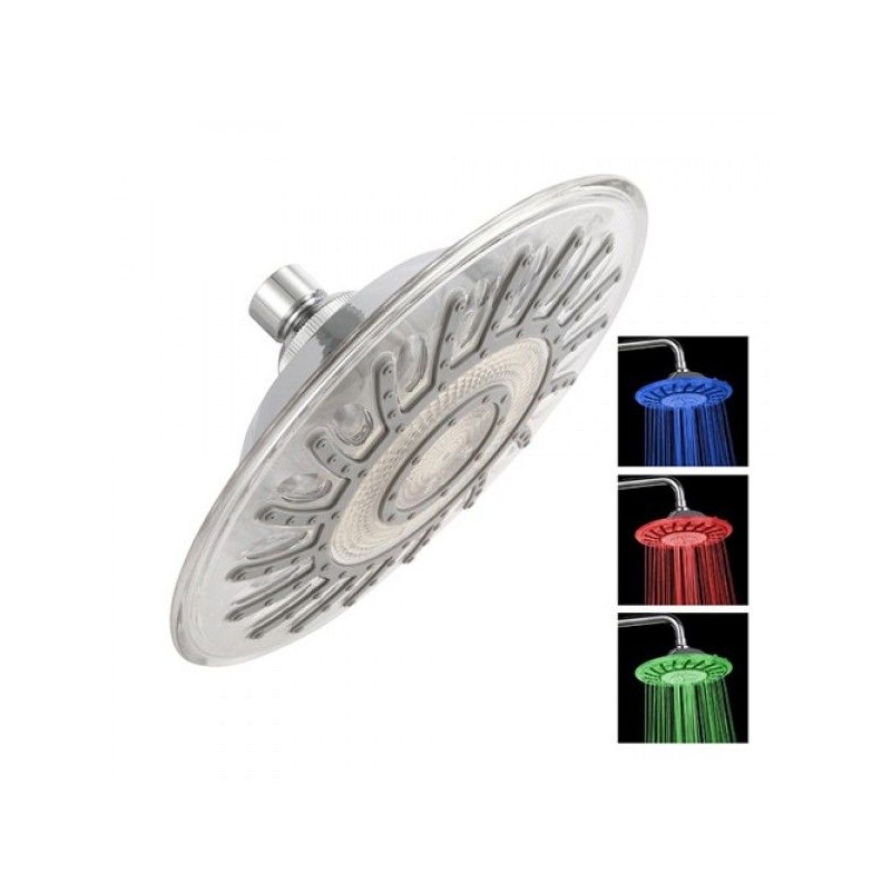 Стилен LED душ с кръгла форма и светлинни ефекти. Душът атрактивно осветява водната струя в три различни цвята спрямо температурата на водата.