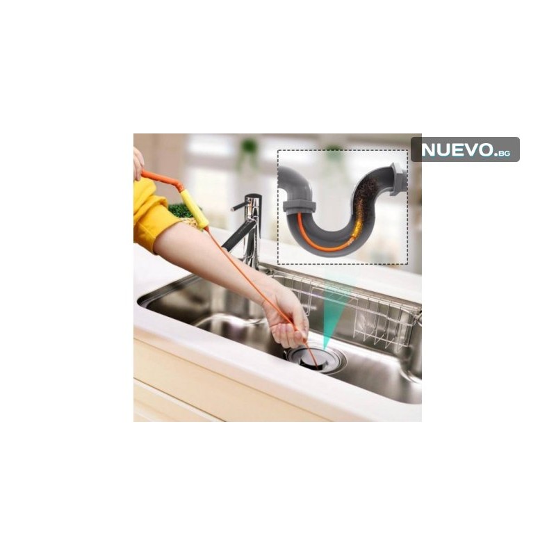 Присоблението е изработено от висококачествено PVC. Има удобна дръжка в единият си край и заострен връх в другия ,а по дължината му са разположени множество кукички, които захващат космите и другите отпадъци запушващи канала.