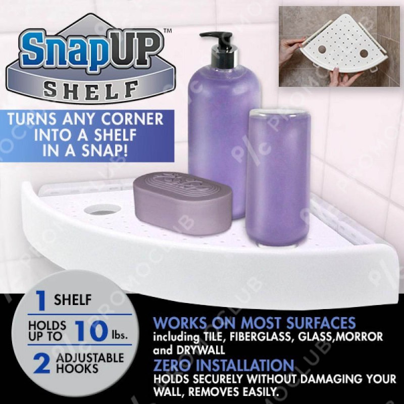 Равтът Snap Up Shelf се монтира лесно - просто поставете в желания ъгъл и натиснете дръжката за налягане, за да се закрепи. Много меките силиконови лапи се залепват към всяка повърхност, ч натискът ги запъва, така че рафтът застава здраво без пробиване, дюбели и винтове. БЕЗ СЛЕДА!!!