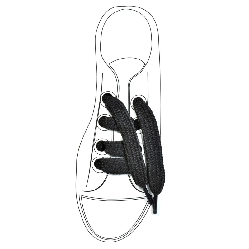 Връзки за обувки в черен цвят изработени от здрав и плътен материал, устойчив на скъсване.
