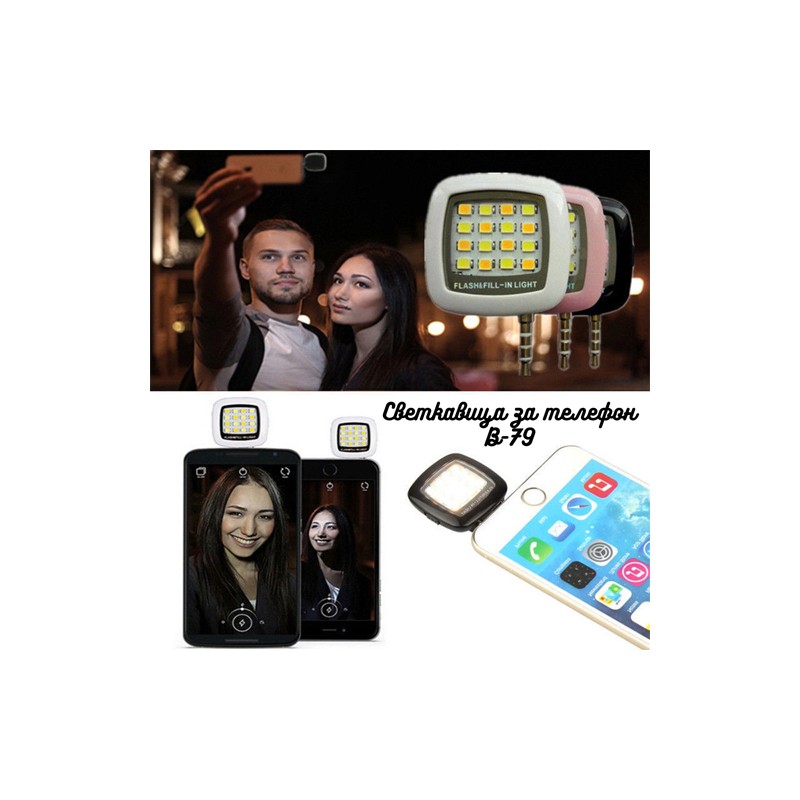 Със Запълваща LED Светкавица за телефон В-79 имате възможност да си направите перфектното селфи дори и в пълен мрак.