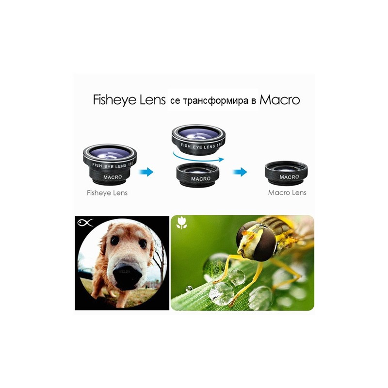 Допълнителни обективи съвместими с камерите на всеки телефон, смартфон, таблет или лаптоп. Предоставят възможност за широкъгълно снимане 180 градуса или просто заснемането на по-качествни изображения.