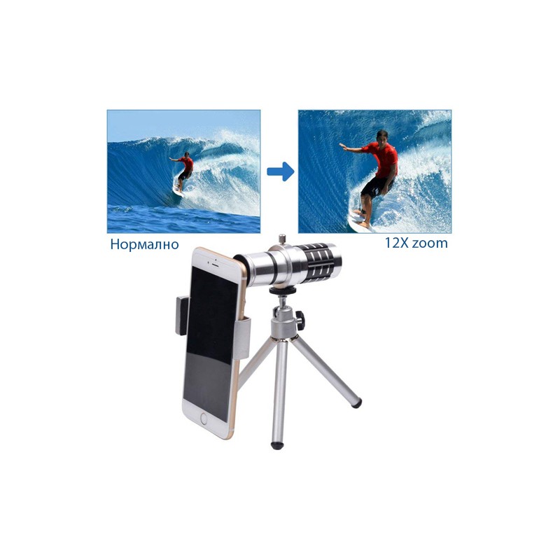 Mobile Phone Lens 12X Телеобектив може да се използва за всички видове мобилни телефони и таблети!