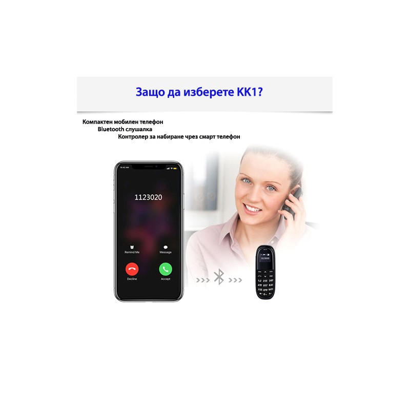 Мини мобилният телефон KK1 Cobllestone Love е добър асистент за смартфони, ако го сдвойте със своя смартфон, можете да го използвате, за да извършвате и получавате телефонни разговори, като музикален плейър, автоматично да синхронизирате телефонните указатели и др.