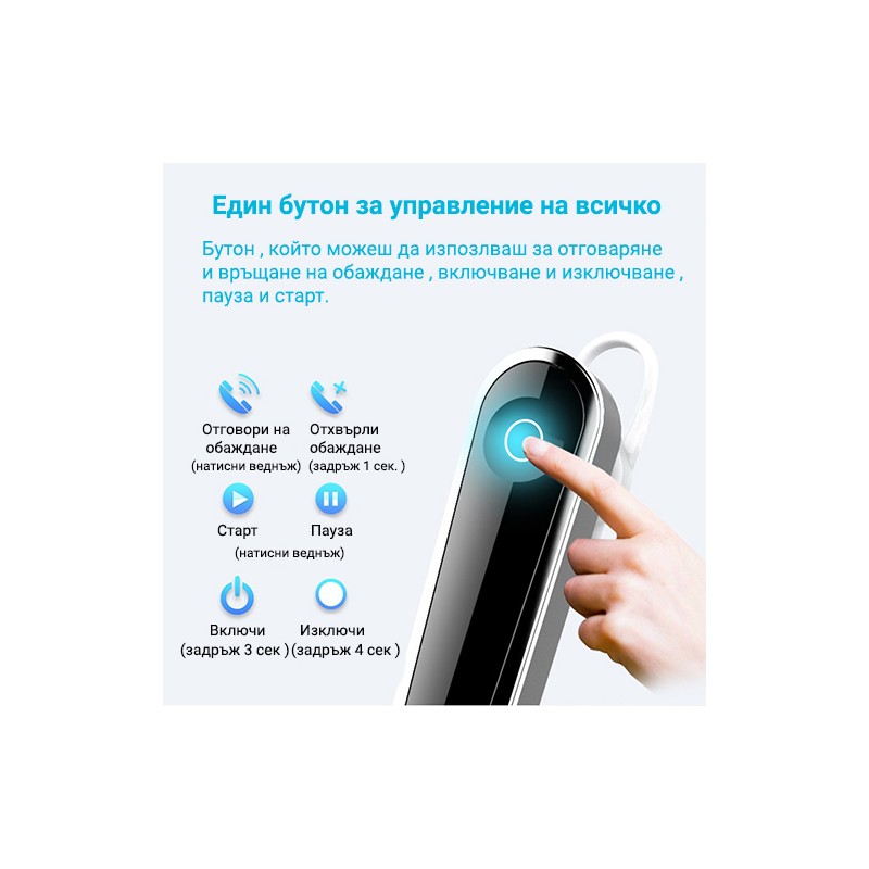 Компактна и стабилна слушалка с разглобяема кука,която приляга удобно на всяко ухо!
