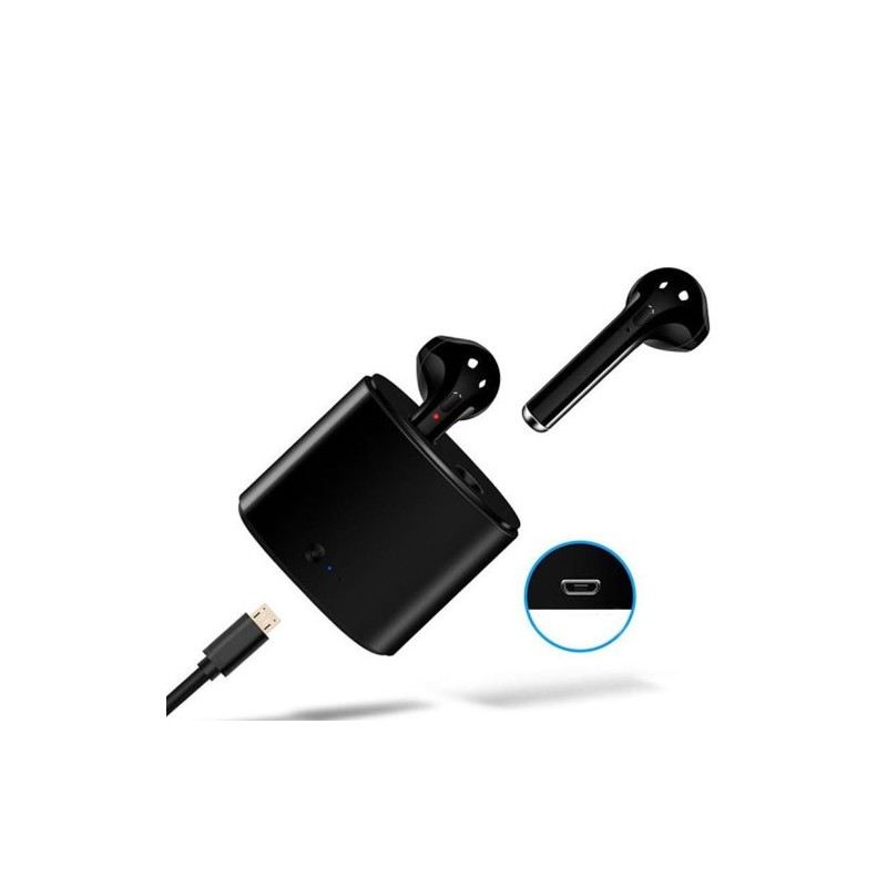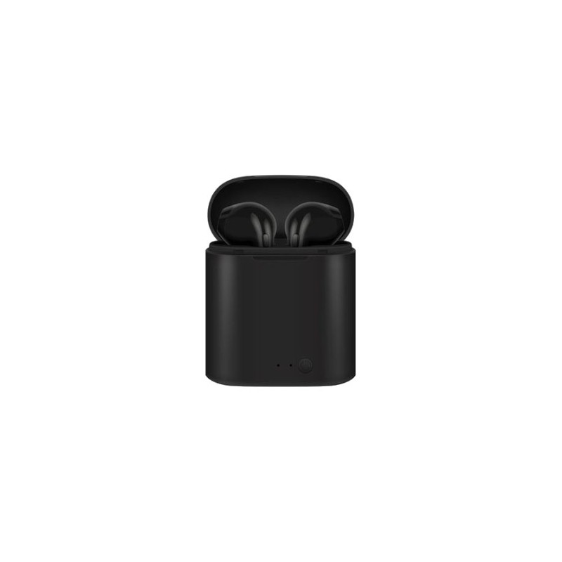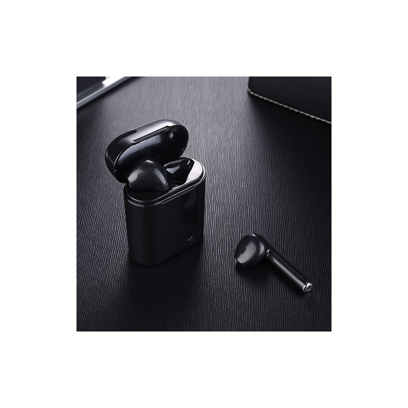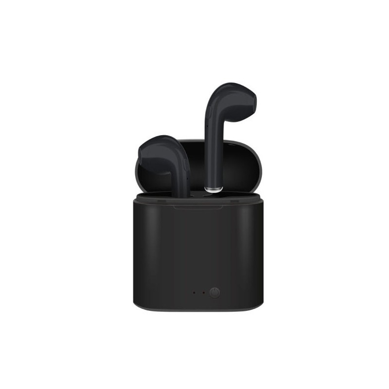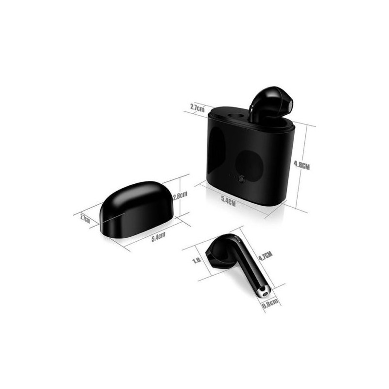Представяме Ви безжични стерео слушалки i7S с bluetooth 4.2+edr комплектът е със станция за зареждане с вградена батерия и USB кабел за зареждане.