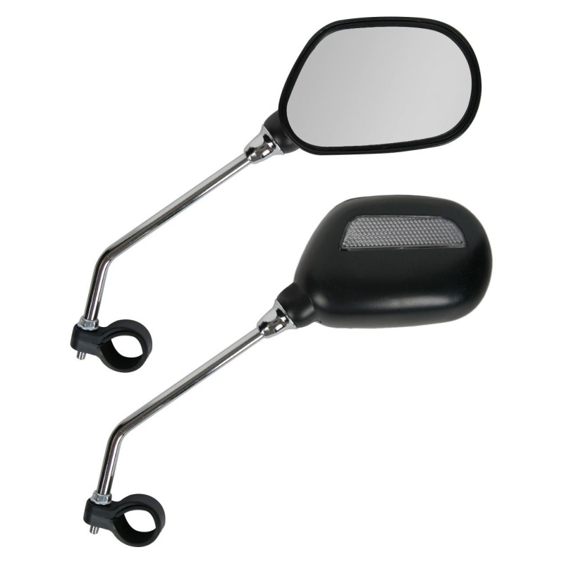 Комплект от 2 броя странични огледала за обратно виждане за велосипед със светлоотразителни ленти и здрава рамка от метал и пластмаса.