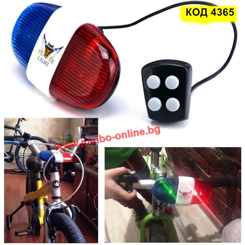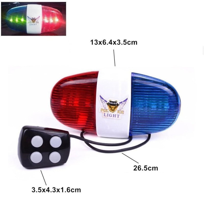 Полицейска сирена със светлини в синьо-червен цвят и 4 мелодии, които имитират звука на патрулите, за да привличат внимание.