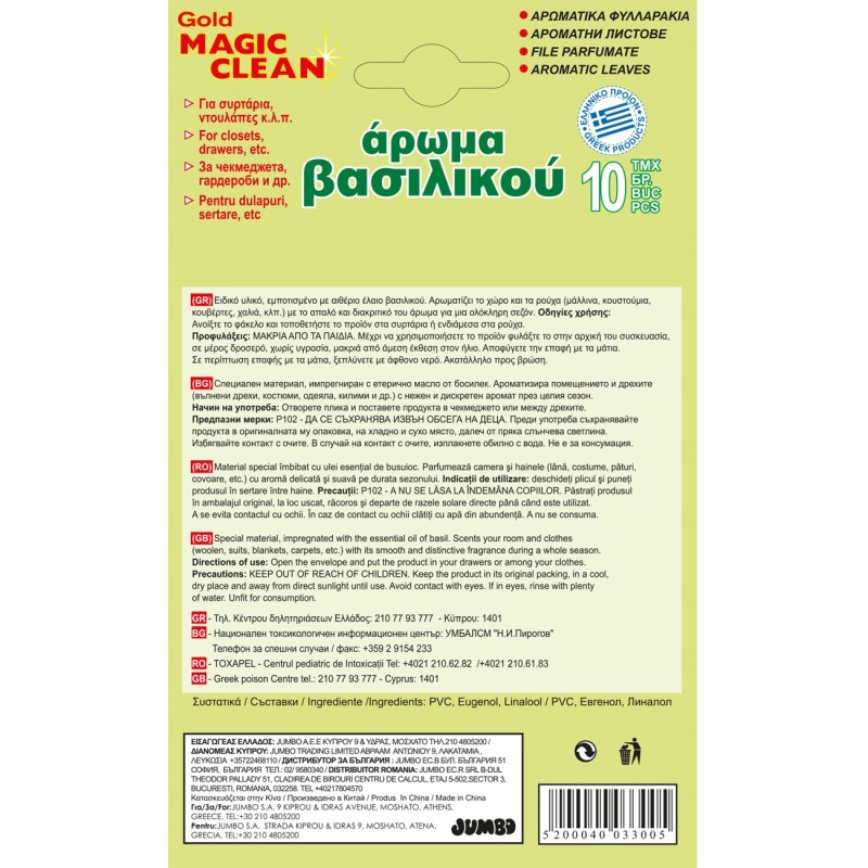 Комплект от 5 броя ароматизатори за гардероб във формата на листенца с аромат на босилек.