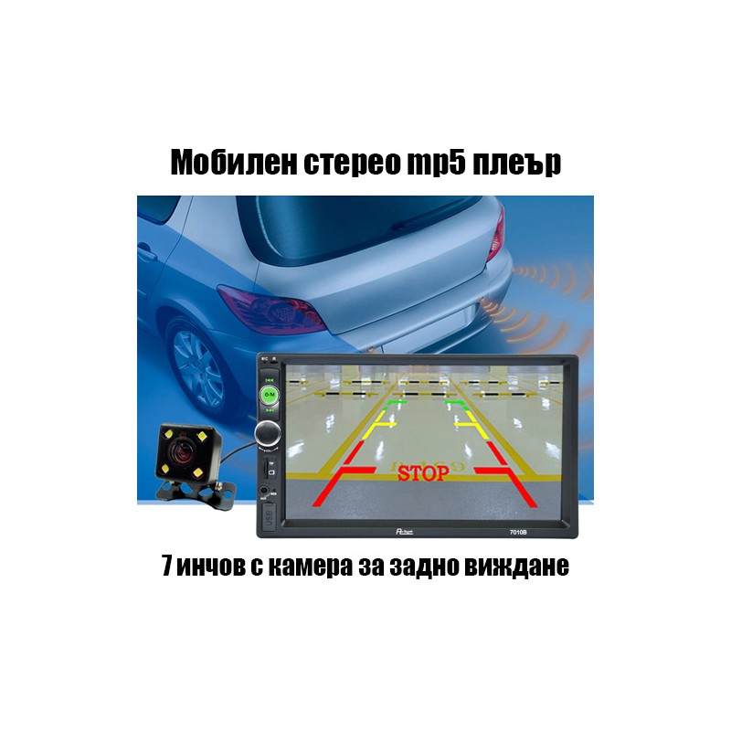 Представяме Ви Car audio 7010b с 7инчов touchscreen HD Mp5 универсална мултимедия за кола с камера за задно виждане включена в цената.