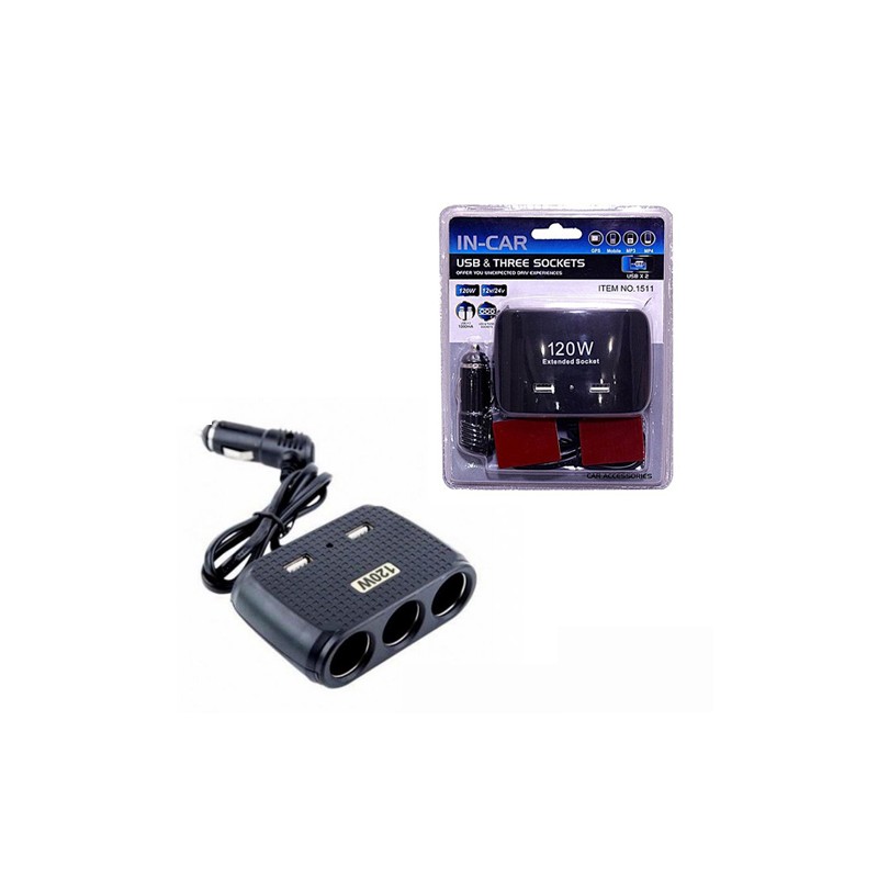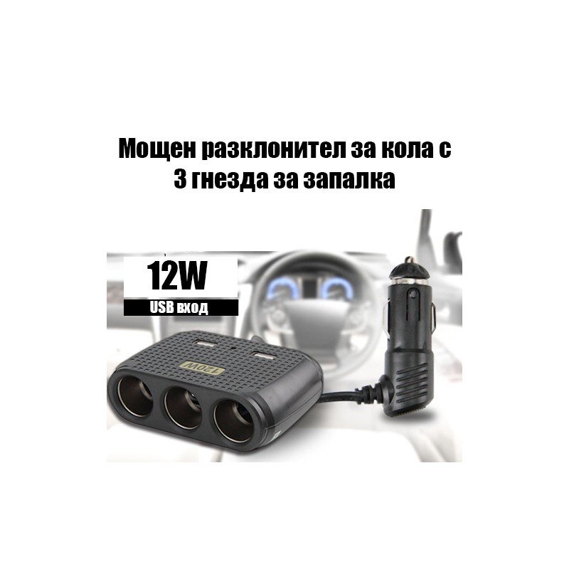 Представяме Ви Мощен 120W разклонител за кола с 3 гнезда за запалка и USB вход