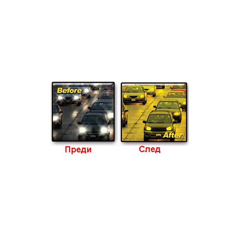 • Специалното покритие на стъклата в жълто блокират нощните отблясъци и предотвратяват умората на очите. Без значение какво е времето  иновативните очила  Night View ще превърнат размитата и сива картина през нощта в чиста и ясна. Насрещното движение вече не е проблем, защото специалните жълти лещи блокират заслепяващите светлини и ви осигуряват детайлно виждане на обектите.