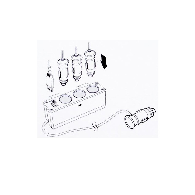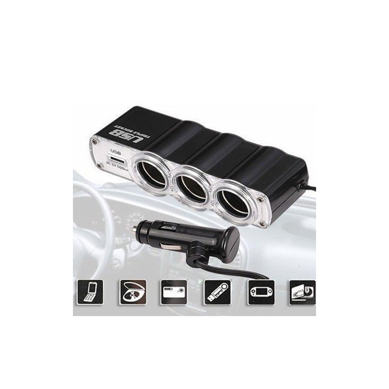 • Разклонител за запалка 12V 1 плюс 3 - позволява да включите до 3 устройства към запалката на колата.Подходящ за зареждане на телефони, фотоапарати, таблети, MP3, GPS устройства и др.