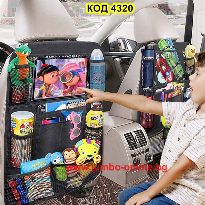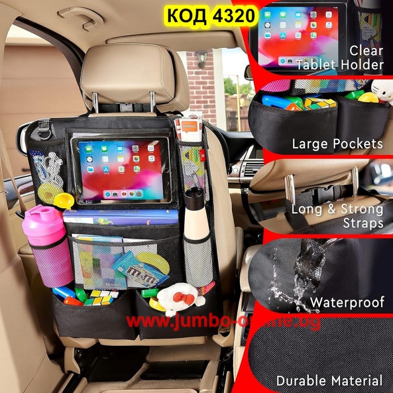 Органайзер за задната седалка на колата с джоб за телефон или таблет