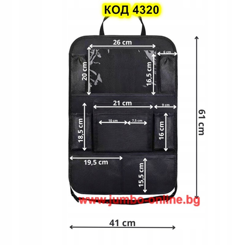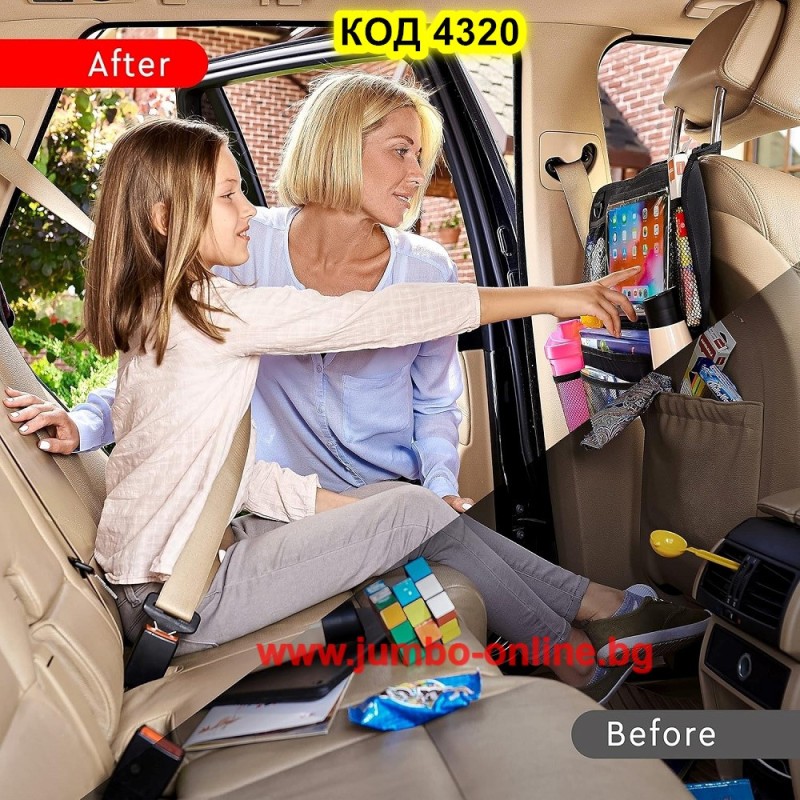 Този органайзер е перфектен за всеки, който иска да поддържа автомобила си чист и организиран, като същевременно осигурява комфорт и забавление на пътниците по време на дълги пътувания.