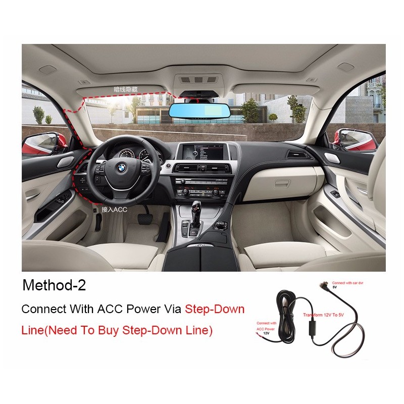 - Предна камера "View Angel" - 5.0 MP вградена в огледалото и снима и записва пътната обстановка пред водача; Притежава въртяща се на 120º с обхват до 170º градуса глава А+ клас с висока разделителна способност и широк ъгъл (1080P Front Len);