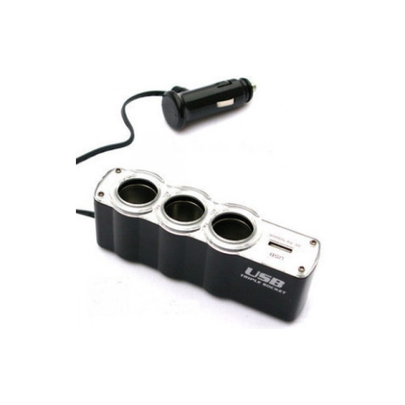 Разклонител 3-ка за запалка на автомобил + USB извод