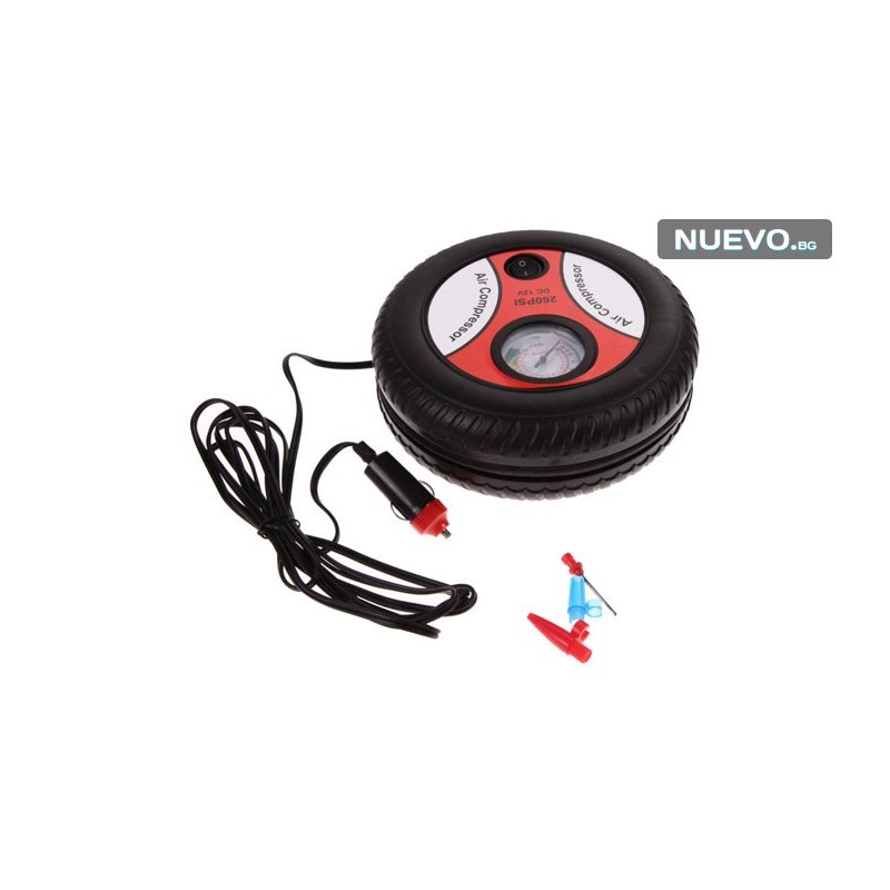 Той е толкова практичен, че ще можете да го взимате винаги със себе си, без да заема големи пространства в автомобила Ви. Включва се в жака на запалката и може да напомпа гумите на колата или велосипеда Ви, надуваеми топки, басейни, играчки и много други неща!