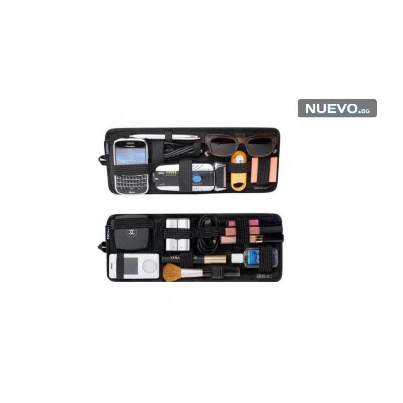 GRID-IT! Това е Вашият нов помощник! Той е оптималният органайзер за подреждане на Вашите аксесоари. Телефони, ключове, запалки, портфейли – всичко ще стои здраво на мястото си, благодарение на начина, по който са разположени ластиците. Така можете да бъде спокойно, че всичко ще бъде там, където сте го оставили.