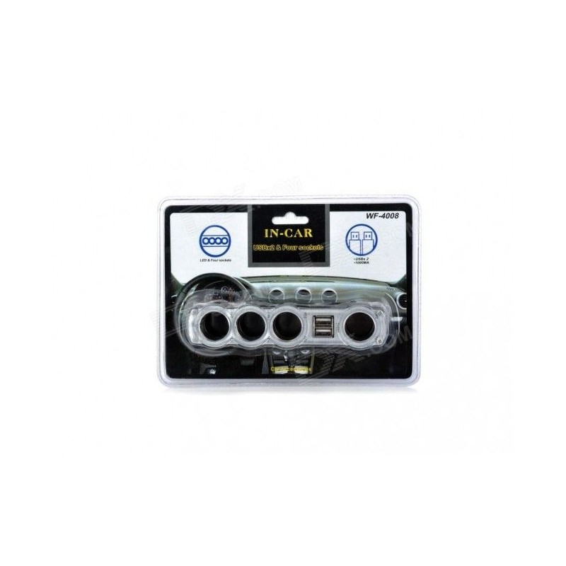 Разклонител за запалка с четири гнезда - 4х 12V-24V + 2x USB 5V - WF 4008