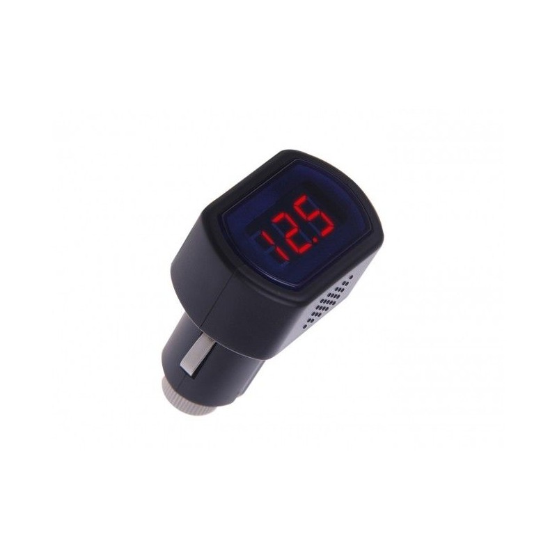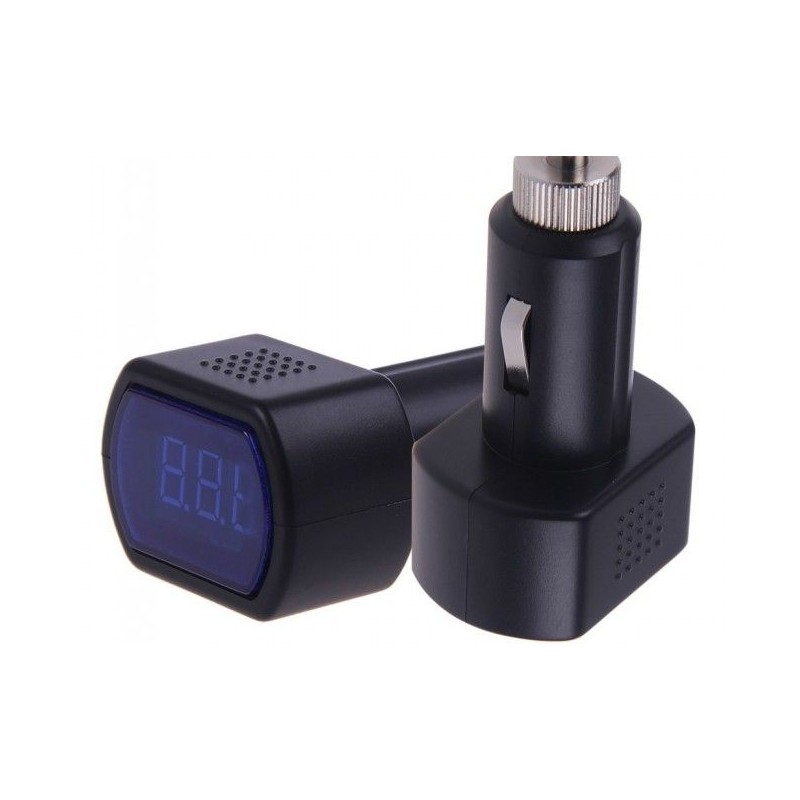 Атрактивен дигитален волтметър в запалката показва напрежението в автомобила.