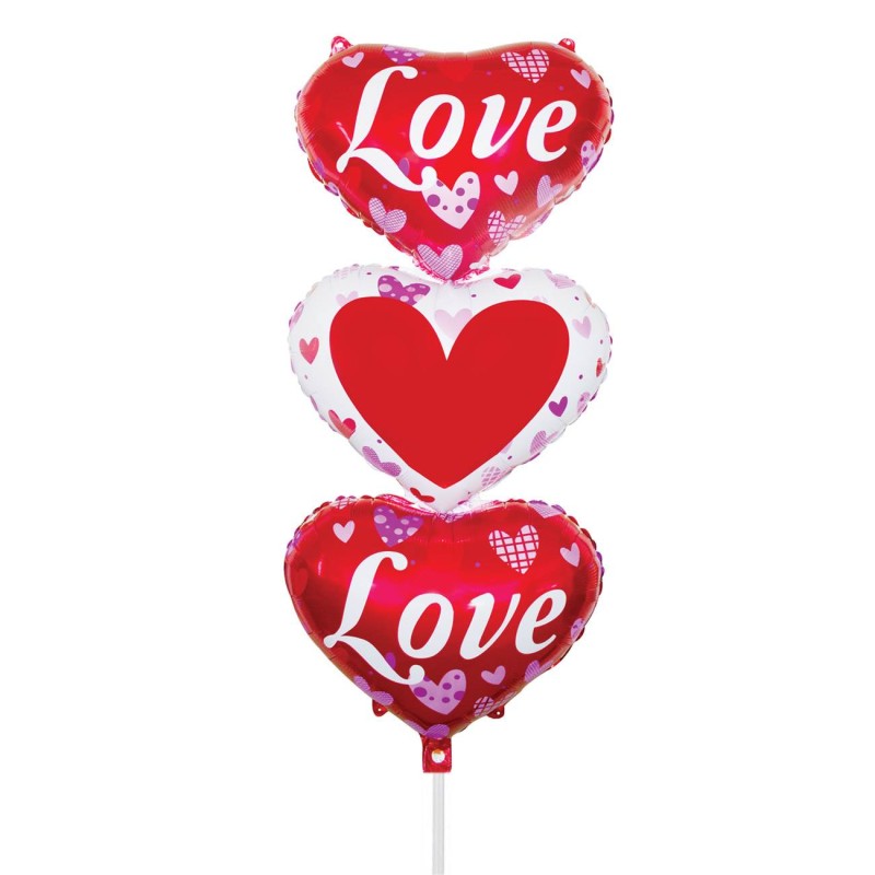 Уникален троен парти балон, изработен от фолио във формата на сърца в червен цвят с надпис Love.