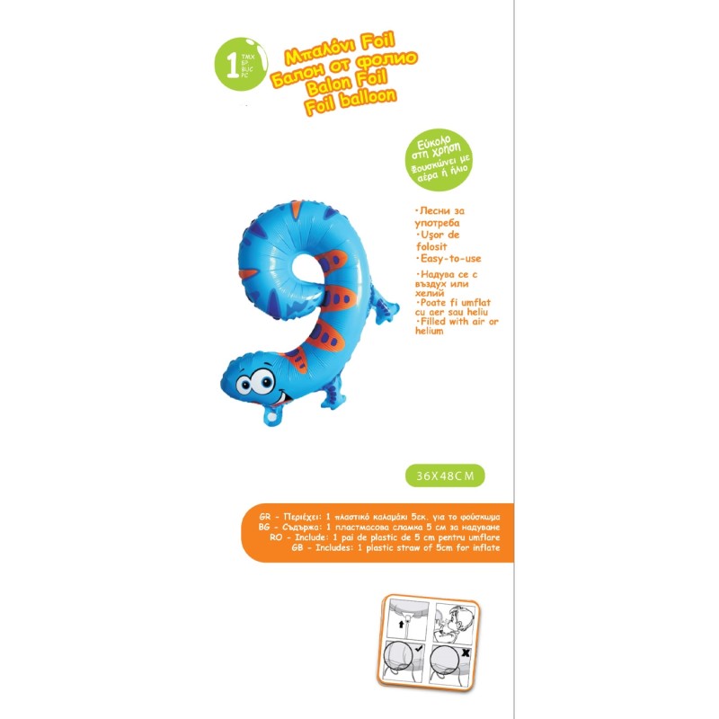 Парти балон цифра 9, изработен от фолио във формата на усмихната акула.