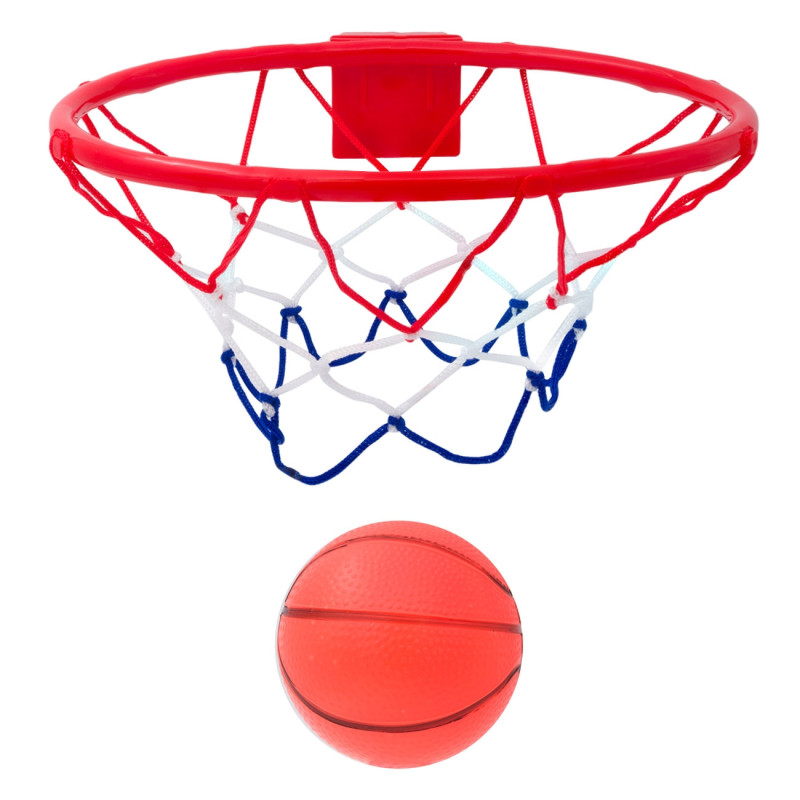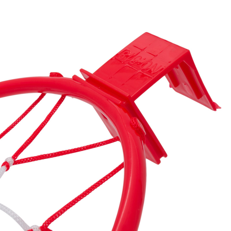 Детски баскетболен кош за стая с мрежа, изработен от качествена и здрава пластмаса в червен цвят.
