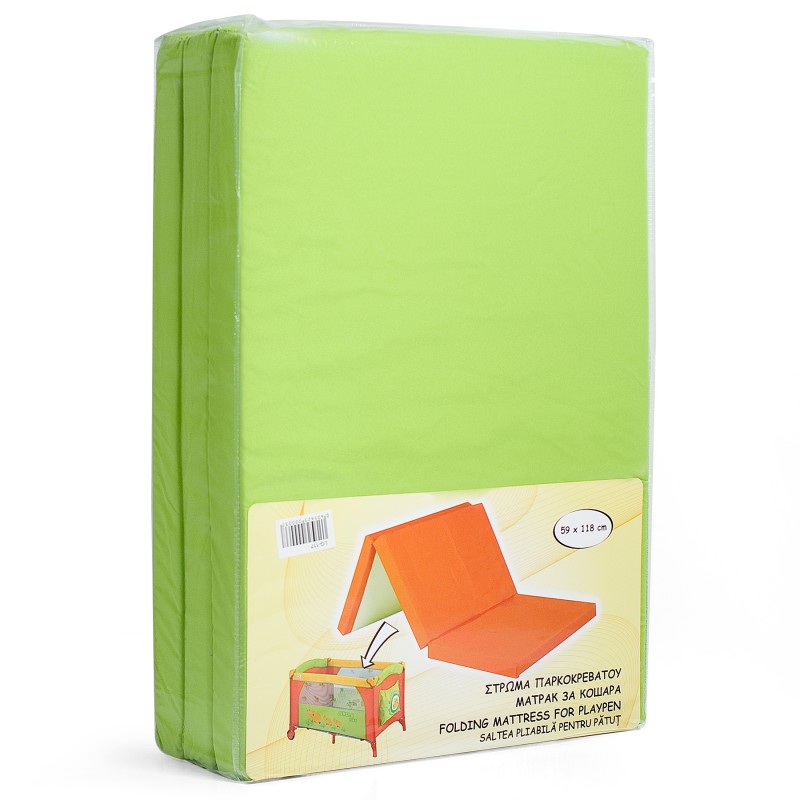 Практичен бебешки матрак за детски сгъваеми кошари и дървени легла, изработен от полиестер с непромокаем калъф в зелен цвят, който може да се сваля и пере.