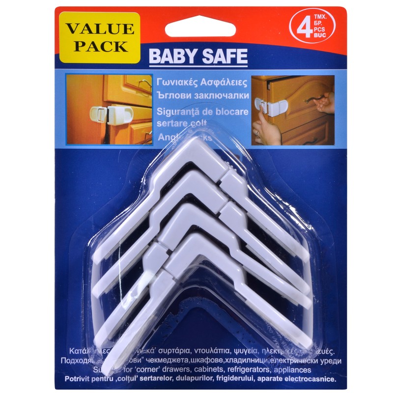 Комплект от 2 броя ъглови заключалки за обезопасяване на дървени шкафчета, врата на хладилник, микровълнова фурна, тоалетен капак и други места в дома.