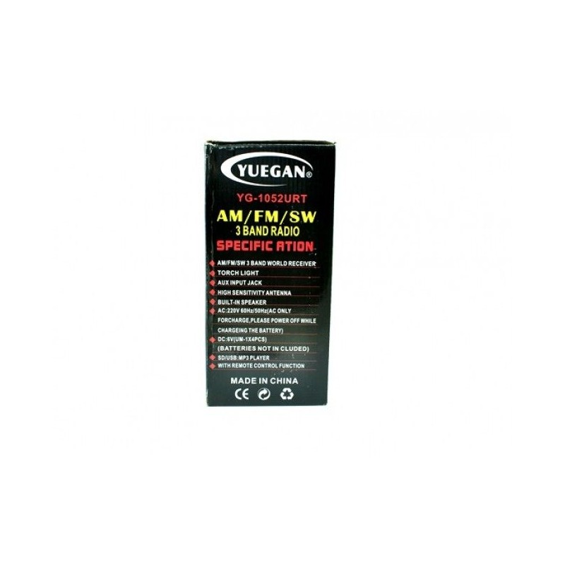 Преносима акумулаторна аудио система YUEGAN YG-1052 URT AM/FM/SW/MP3/AUX/USB/SD CARD slot