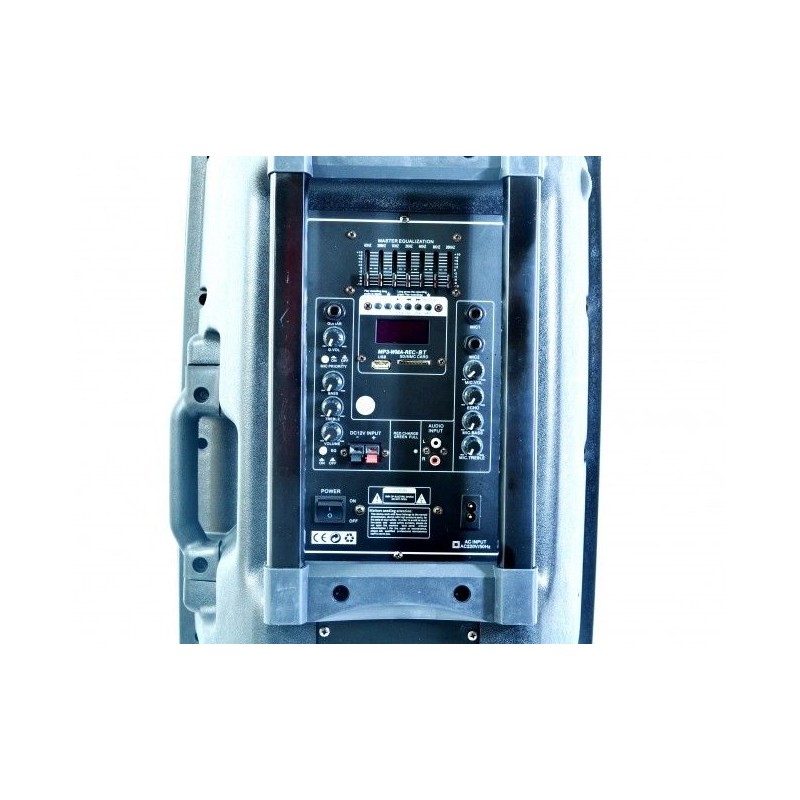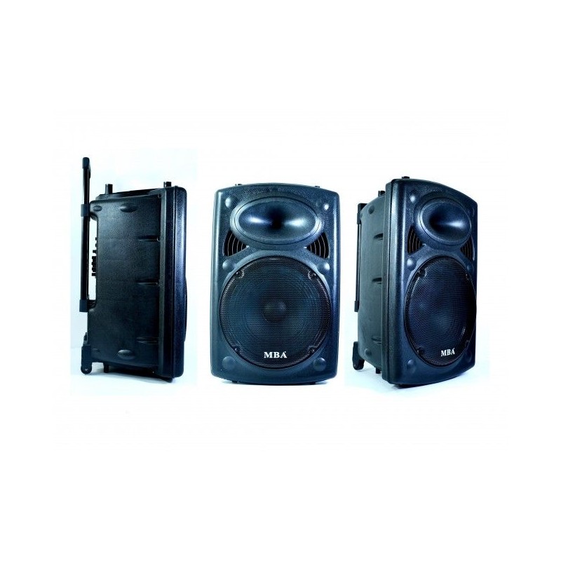 DJ вече не зад пулта, а на открито, дори и сред природата, далеч от всякаква електрическа мрежа. MBA F15 e мощна акумулаторна аудио система с пълна функционалност на професионален DJ пулт, експлозивна мощност и HiFi качество на звука. Идеална за улични музиканти, купони, презентации, караокета в хотели, ресторанти и др. Колоната е много удобна и за ползване на места където няма електричество, тъй като е с вграден мощен акумулатор. Уредбата възпроизвежда MP3 директно от USB Flash или карта памет SD. Малкият дигитален дисплей показва честота на станция или номер на възпроизвежданата песен / файл. Входове AUX и Bluetooth връзка с телефон/лаптоп/таблет.