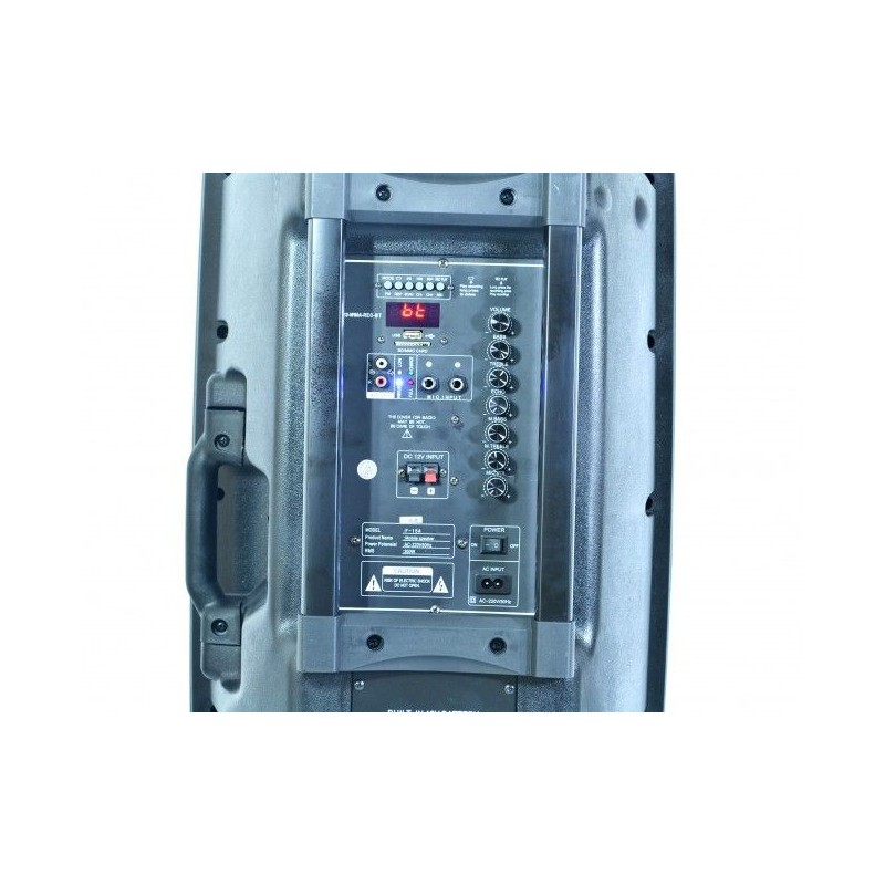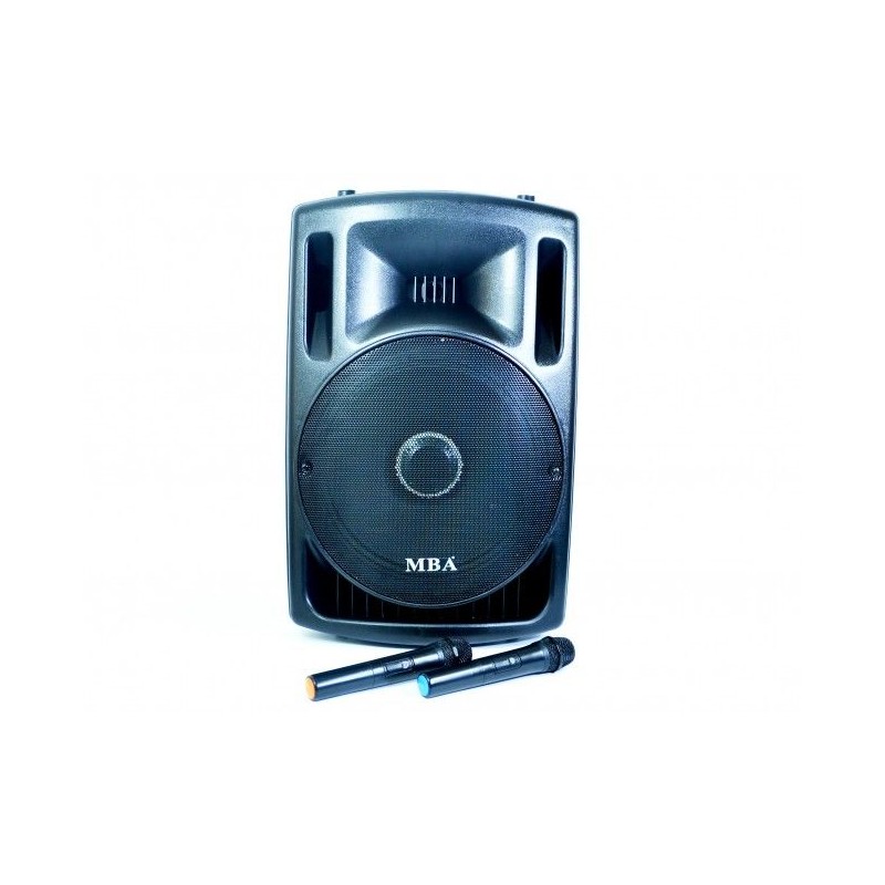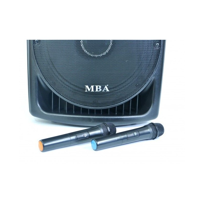 Супер мощна акумулаторна караоке аудио система MBA F15А с диско светлини и 2 безжични караоке микрофони за озвучаване на всякакви събития, сватби, събори. MBA F15A e мощна акумулаторна аудио система с пълна функционалност на професионален DJ пулт, експлозивна мощност и HiFi качество на звука. Уредбата възпроизвежда MP3 директно от USB Flash или карта памет SD. Малкият дигитален дисплей показва честота на станция или номер на възпроизвежданата песен / файл.