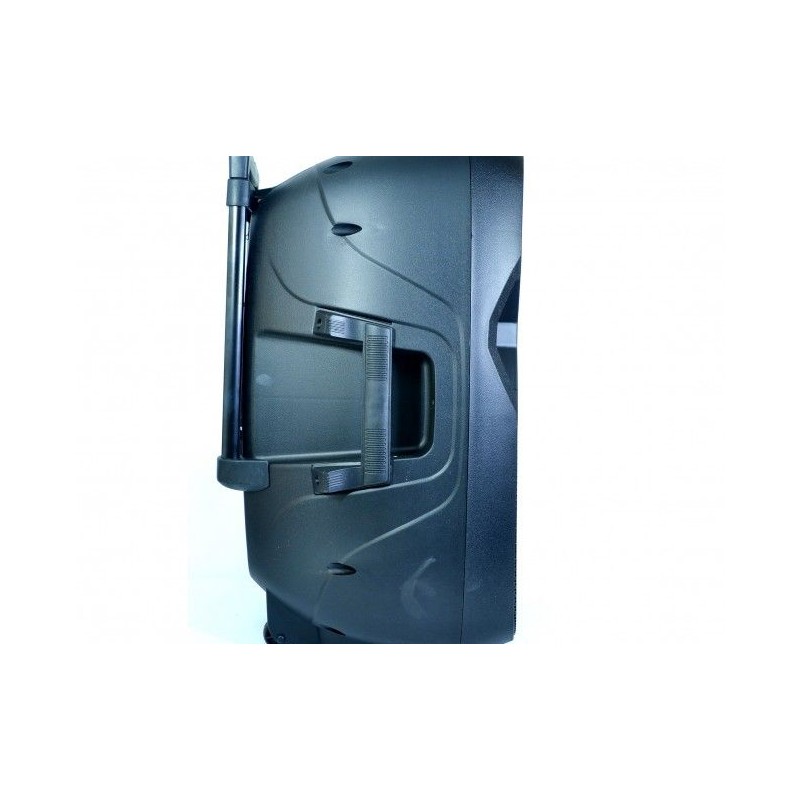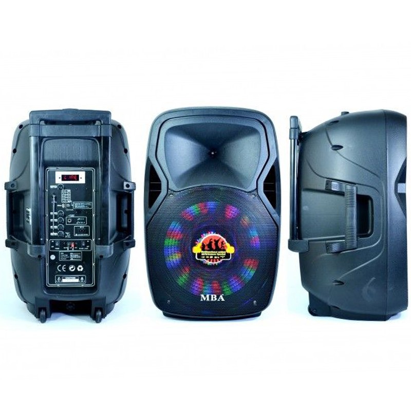 DJ вече не зад пулта, а на открито, на улицата или дори сред природата, далеч от всякаква електрическа мрежа. MBA Q15 e мощна акумулаторна аудио система с пълна функционалност на професионален DJ пулт, експлозивна мощност и HiFi качество на звука. Уредбата възпроизвежда MP3 директно от USB Flash или карта памет SD. Малкият дигитален дисплей показва честота на станция или номер на възпроизвежданата песен / файл. Много мощният 15-инчов широколентов бас осигурява плътна кристална бленда на звука с минимални изкривявания под прага.