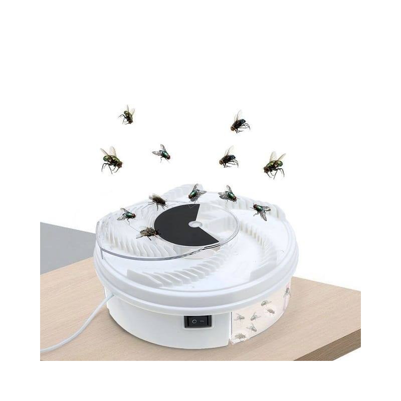 Ефикасен начин да се справите с мухите! Уред против мухи, който улавя досадните насекоми в капан. Представлява кръгъл контейнер с горна част разделена на 5 зони. Във всяка зона има отделение, в което се поставя примамка (специален прах или сладък сироп).