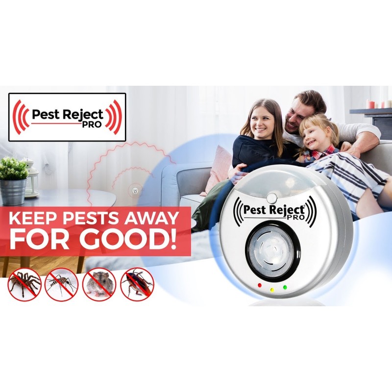 Осигурете си желаното спокойствие, защитете храната и домът си! Не позволявайте на насекоми, мишки и други домашни вредители да безпокоят Вас и Вашите деца. Използвайки Pest Reject Pro ще прогоните дразнителите по хуманен начин без да ги убивате.