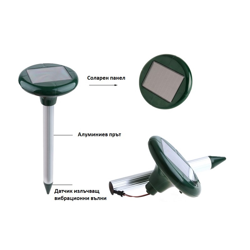 Погрижете се лесно, бързо, безопасно и екологично с новия соларен уред против гризачи, насекоми, мишки и змии във вашия двор и дом. Поставя се в почвата на открито - двор или градина.