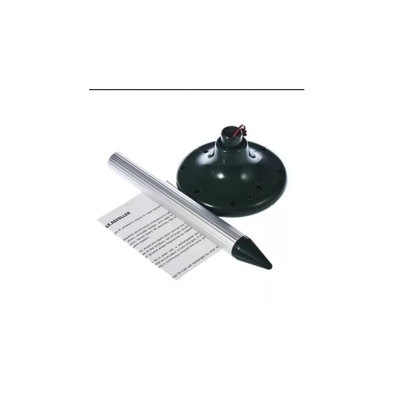 Начин на употреба: Земята където поставяте уреда против къртици не трябва да е замръзнала или наводнена. Премахнете всички препятствия, които биха могли да попречат на работата на уреда за къртици. Евентуални препятствия могат да попречат на разпространението на ултразвуковите вълни. За най-добра защита от сляпо куче, къртици и др. подобни гризачи - инсталирайте на всеки 20 метра от вашата градина и ще излъчва вълни на всеки 30 секунди. Не използвайте прекомерна сила при инсталиране на уреда. Поставете го в дупката оставяйки около 1 см. над земята. Свържете буксата, приемник с предавател. Внимателно поставете проводника във вътрешността на уреда. Прикрепете върха със соларният панел към тялото на уреда.
