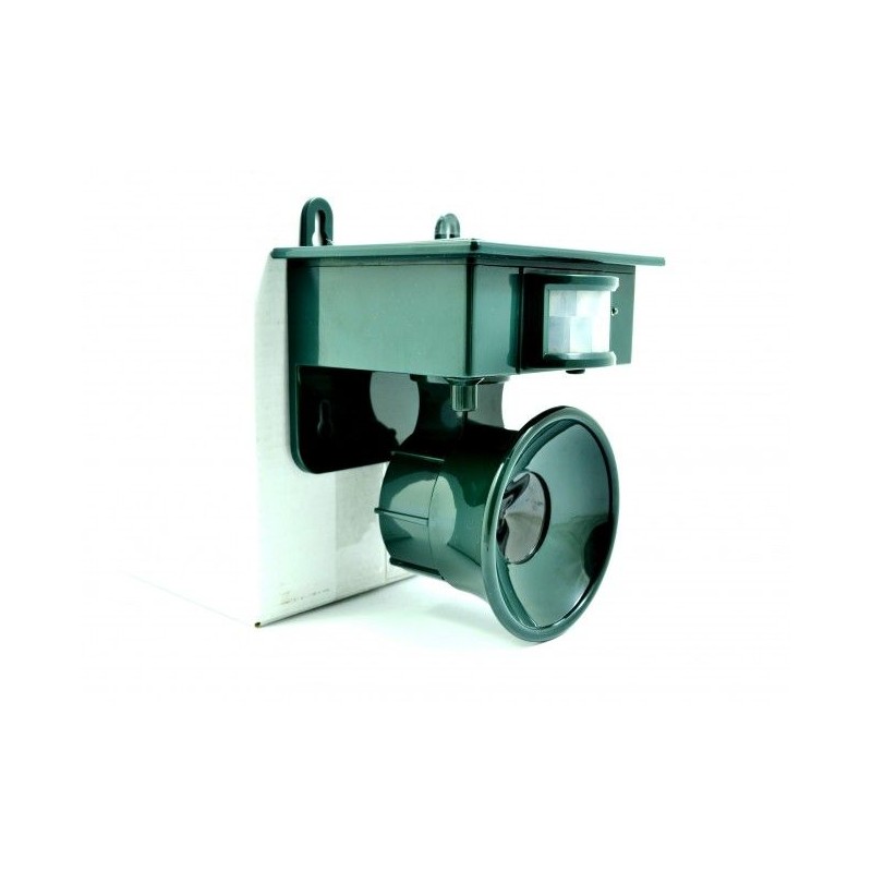 Вграден датчик за движение до 10м. Регулиране на звуковия диапазон за гонене на съответните животни (за закрепване на стена, дърво и други).